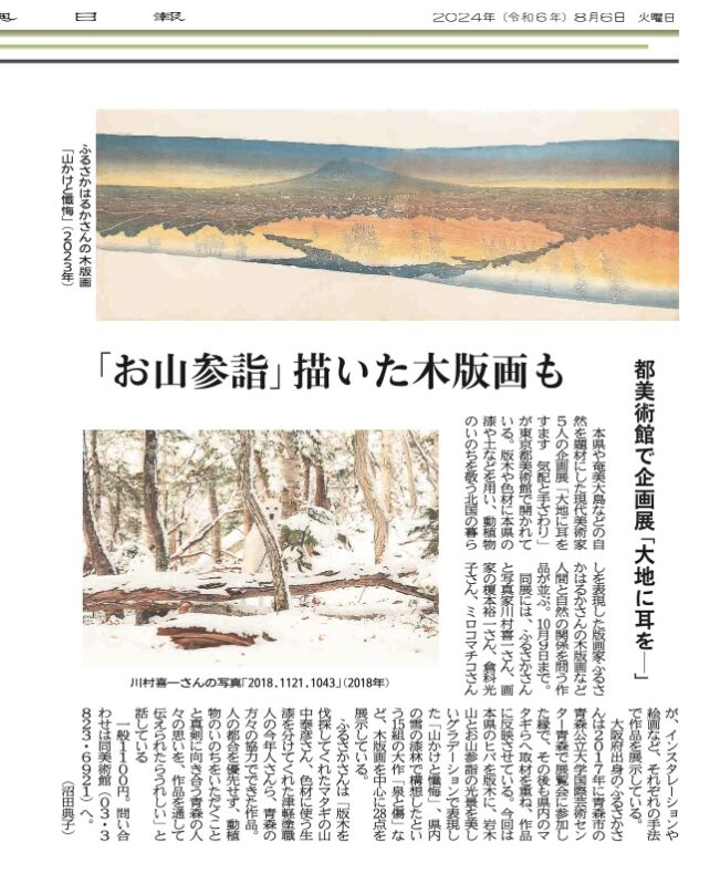 青森の東奥日報さんが、企画展「大地に耳をすます 気配と手ざわり」(東京都美術館)をご紹介くださいました(2024年8月6日)。
