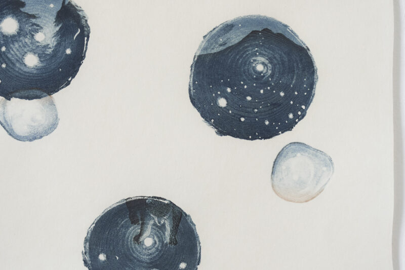 ソマの舟《光の話》(部分)藍 土 漆 紙, 木版 2023