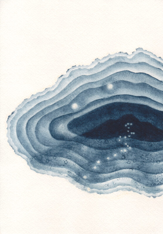 ことづての声《ヒバと漆》藍 土 紙, ドローイング 2023